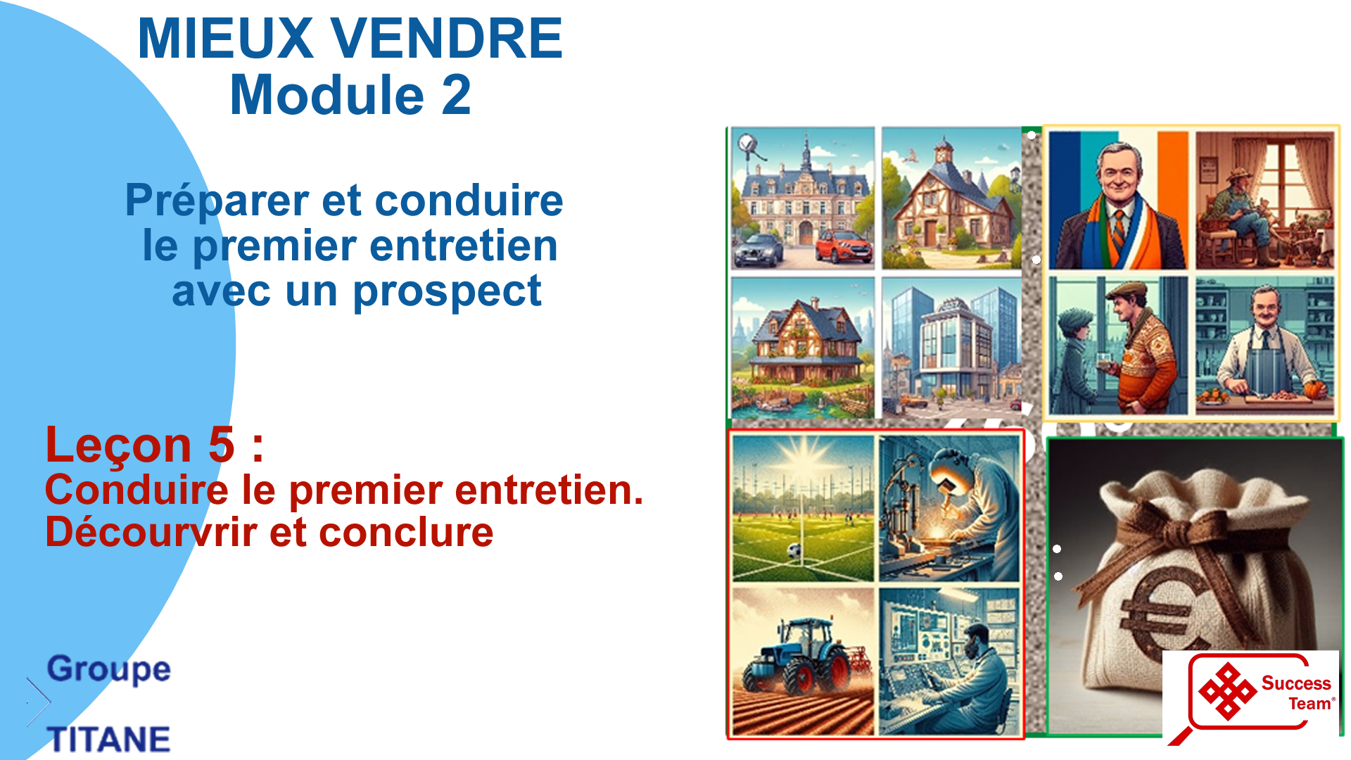 Apprenez à mener un premier entretien de manière efficace avec cette leçon essentielle. Découvrez comment poser les bonnes questions pour identifier et comprendre les besoins réels de votre interlocuteur, puis maîtrisez l'art de la reformulation pour valider ces besoins. Enfin, apprenez à conclure l'entretien en ouvrant la voie à la suite de la relation commerciale.