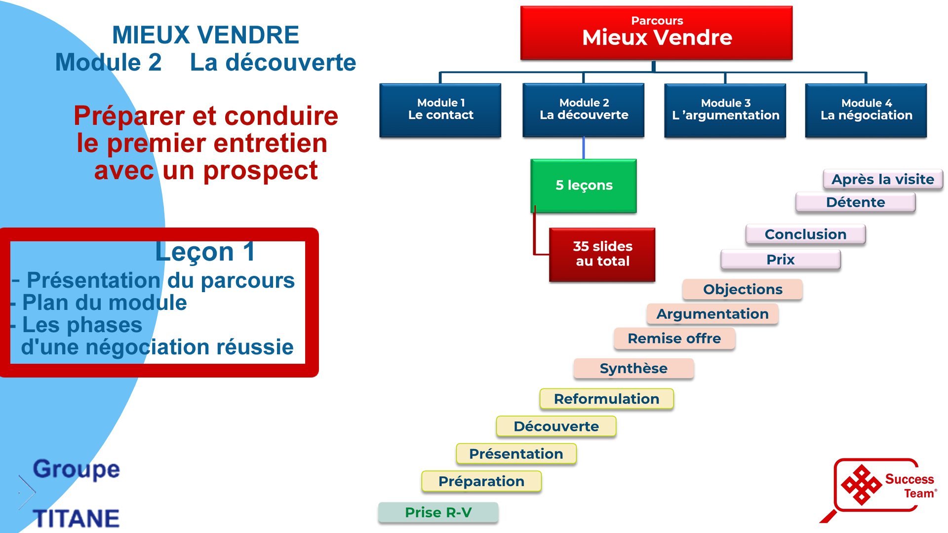 5 leçons - 36 slides - 44,05 Min. - Prix 79 € HT - Offert aux membres du Club Success Team - Accès 90 jours